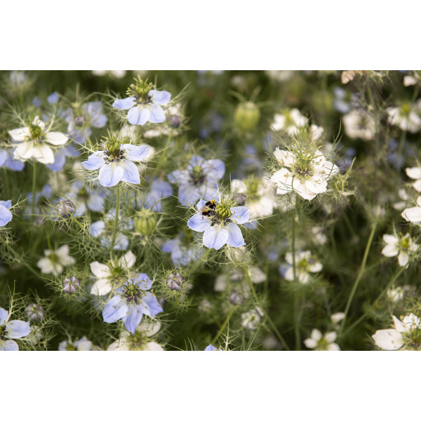 Plante annuelle, appelée aussi «cheveux de Vénus» aux fleurs de couleur bleu et blanc. Très rustique qui pousse essentiellement sur le pourtour du bassin Méditerranéen et dans le Caucase. Utilisation principalement en massif. Graines toxiques. Hauteur de la plante : 40 à 50 cm.