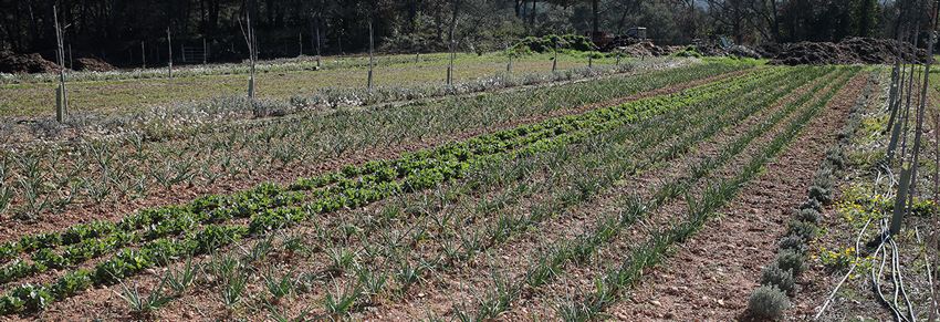 Cet hiver, Julien, chef de cultures et Emmanuel, responsable de l’agroforesterie de la ferme semencière d’AGROSEMENS ont mis en culture une nouvelle parcelle : le verger de pistachiers. Entre chaque rang de fruitier ils ont planté de l’immortelle italienne, des oignons rouges de Simiane et des fèves Aguadulce.