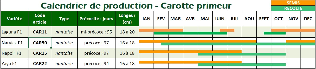 - carotte primeurs : 90 à 110 jours soit 12 à 15 semaines