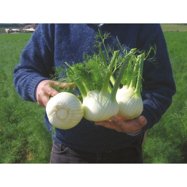 Le fenouil est une plante annuelle, originaire d’Italie, consommée crue en dessert, trapue, à tige très courte. Afin de bien bulber, et d’éviter la montée à graines, choisissez un sol frais et riche. Éclaircissez à 15 cm. Arrosez fréquemment et copieusement. Dès que le fenouil bulbe au niveau du collet, buttez le légèrement. Légume très savoureux, goût sucré et anisé. Plantation entre 15 et 20°C. Suivant les régions, le fenouil hybride peut se semer en toutes saisons, les meilleurs résultats sont obtenus au printemps et en été. Ainsi on peut réaliser plusieurs semis. Ramassez très régulièrement et très vite car sa période de production est très groupée.