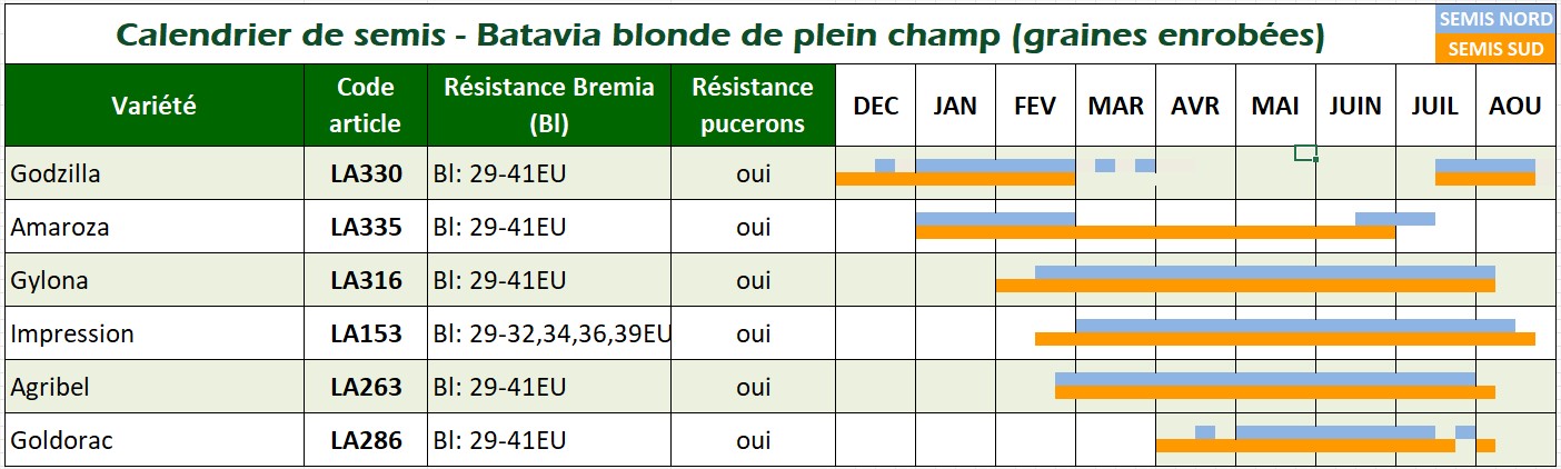 Graine enrobée, abréviation : GE Une graine enrobée est une graine de précision, répondant aux normes de qualité les plus sévères, qui a subi un procédé d’enrobage consistant à recouvrir la semence d’un matériau naturel (ex. : argile) pour changer la forme de la graine (généralement ovoïde à ronde ) et en rendre le semis plus facile. De plus, l’enrobage permet de garder l’humidité autour de la graine, la levée en devient plus homogène. Les semences enrobées ont une durée de vie limitée (environ 1 an) et se conservent au réfrigérateur. Pour bénéficier des semences les plus fraîches, il est conseillé de commander les semences de laitues de plein champ à partir du mois de décembre et les laitues d’abri à partir du mois de juillet. Indispensable pour un semis réussi : Après le semis, les plaques de semis doivent impérativement rester 48 h à une température de 18 à 20°C avant leur passage en serre, d’où l’importance de stocker le terreau à l’ombre et au frais pendant l’été.