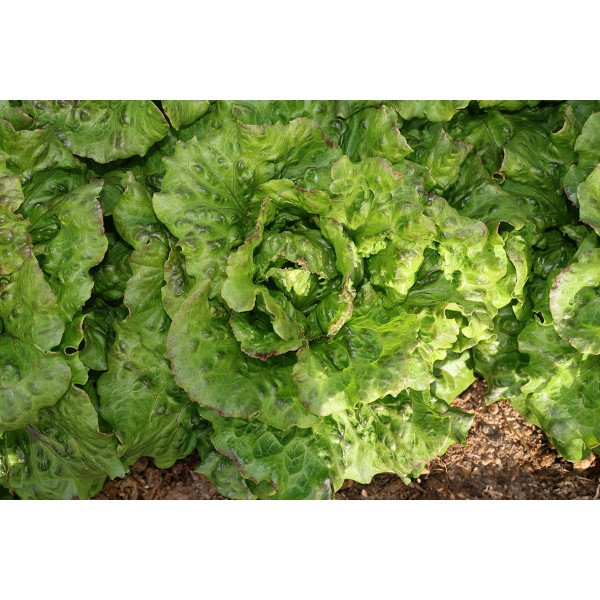 Batavia à la pomme volumineuse et au feuillage vert clair teinté de rouge, croquant et épais. Excellente qualité gustative.