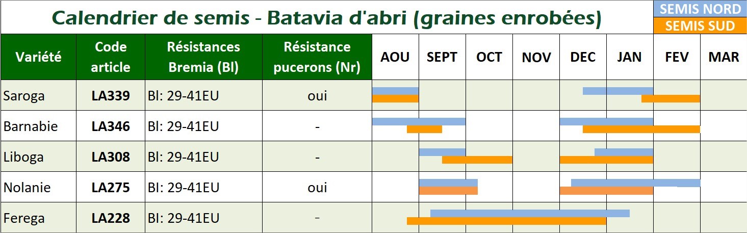 Graine enrobée, abréviation : GE Une graine enrobée est une graine de précision, répondant aux normes de qualité les plus sévères, qui a subi un procédé d’enrobage consistant à recouvrir la semence d’un matériau naturel (ex. : argile) pour changer la forme de la graine (généralement ovoïde à ronde ) et en rendre le semis plus facile. De plus, l’enrobage permet de garder l’humidité autour de la graine, la levée en devient plus homogène. Les semences enrobées ont une durée de vie limitée (environ 1 an) et se conservent au réfrigérateur. Pour bénéficier des semences les plus fraîches, il est conseillé de commander les semences de laitues de plein champ à partir du mois de décembre et les laitues d’abri à partir du mois de juillet. Indispensable pour un semis réussi : Après le semis, les plaques de semis doivent impérativement rester 48 h à une température de 18 à 20°C avant leur passage en serre, d’où l’importance de stocker le terreau à l’ombre et au frais pendant l’été.