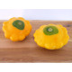 Cycle de 50 jours après la plantation. Pâtisson jaune semi-sphérique et plat avec le rebord en feston. Chair blanche au goût très fin. Plante relativement petite mais avec un très bon potentiel de rendement. Se consomme cru à l’état jeune ou cuit. Haute teneur en minéraux, en oligoéléments et en vitamines C, B, D, E.